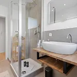 Élvezze a Ma Suite - High-Quality New Apartment Augsburg hajszárítóval és törölközőkkel felszerelt fürdőszobájának kényelmét. Külön WC és zuhanyzó is található.